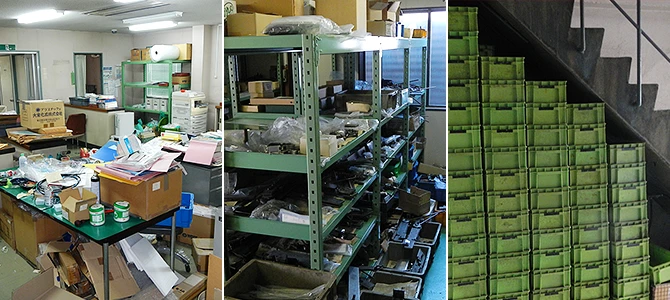 弊社では廃業・移転に伴う工場・事務所の片付けも承っております。大型の中古機械の搬出、大量の材料や金型の処分だけでなく、建物解体まで受託しております。買取・処分の両面でご提案出来るため、コストダウンが可能です。