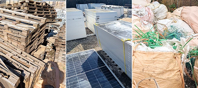 太陽光パネル、パレット、梱包材、フェンス、ジャバラホース